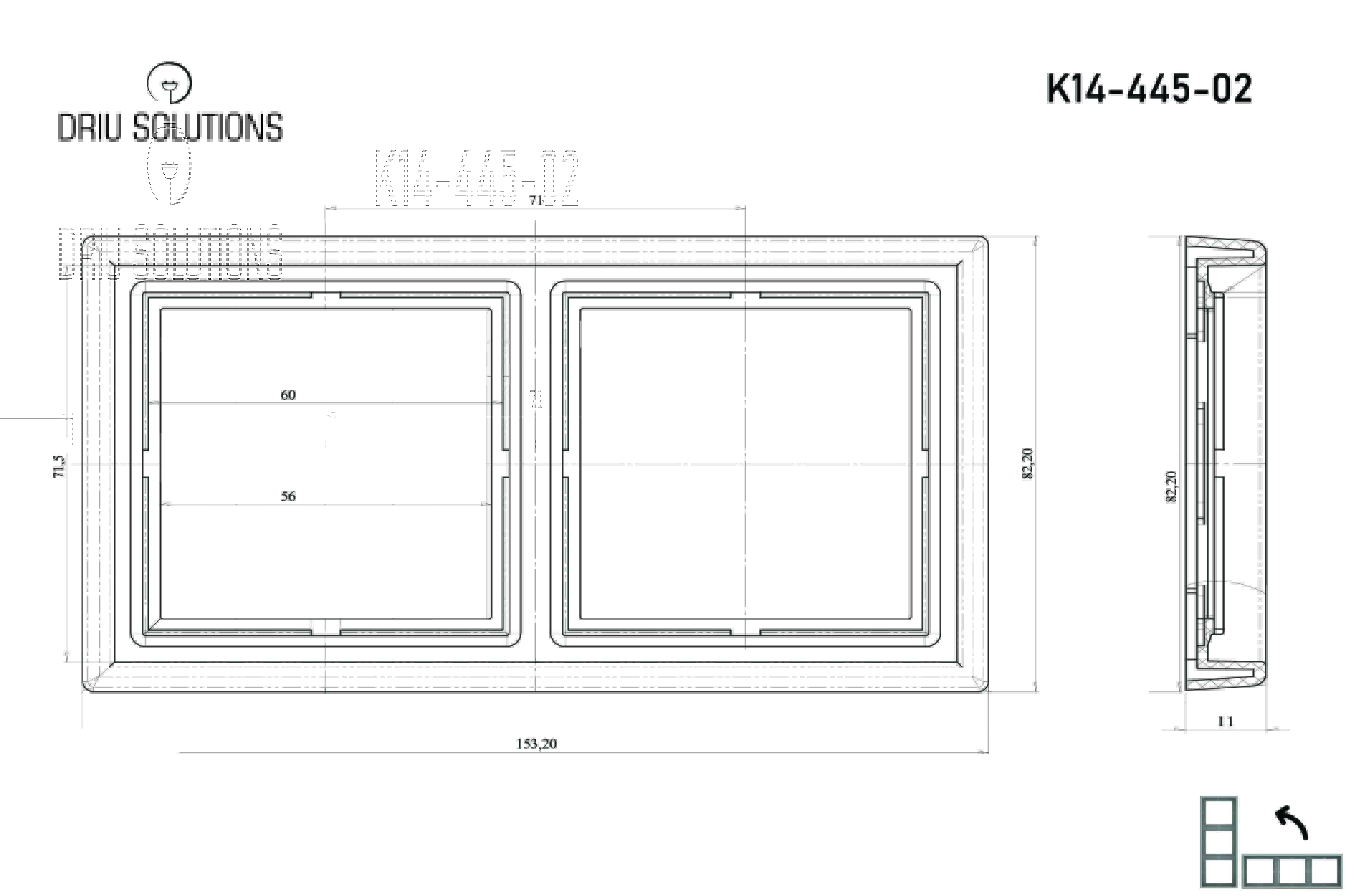 2-jų vietų rėmelis. Gaminys tinkamas montuoti horizontaliai/vertikaliai.