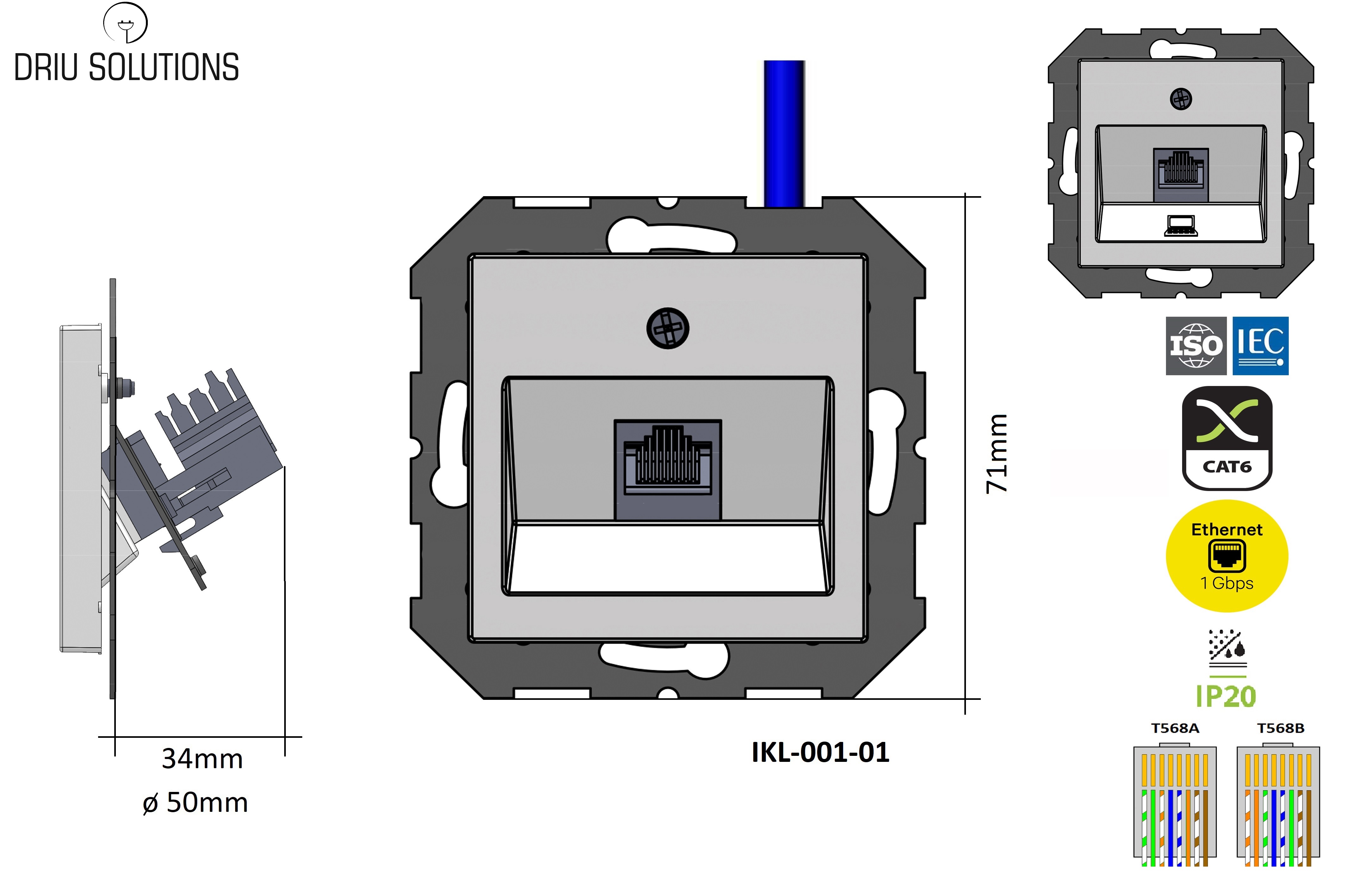Kompiuterio lizdas RJ45. CAT 6A, be rėmelio. IKL-001-01.S_GM