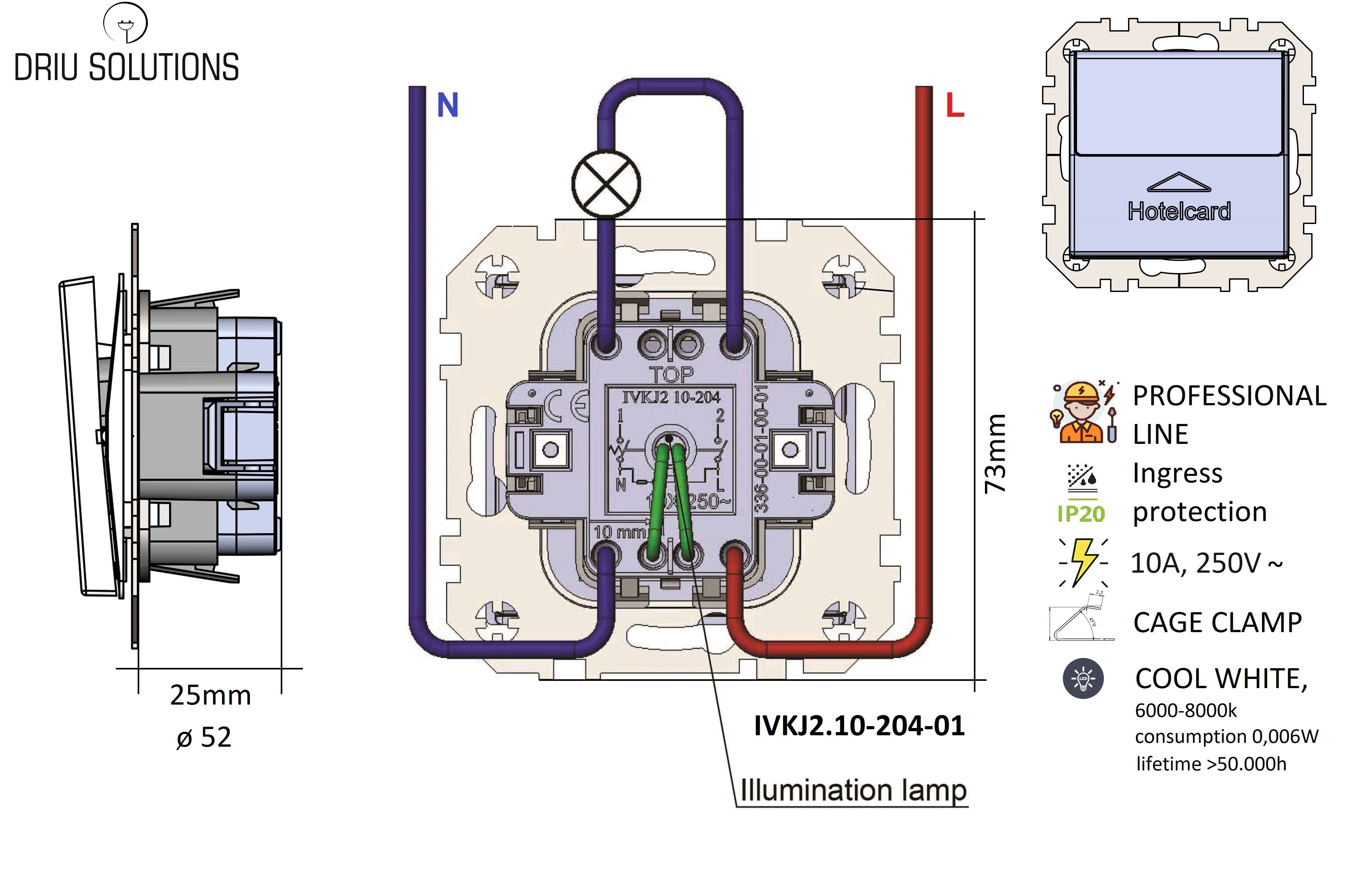 Viešbučio kortelių jungiklis "Profi" su spyruokliniais pajungimo kontaktais, LED, be rėmelio. IVKJ2.10-204-01.S_GM